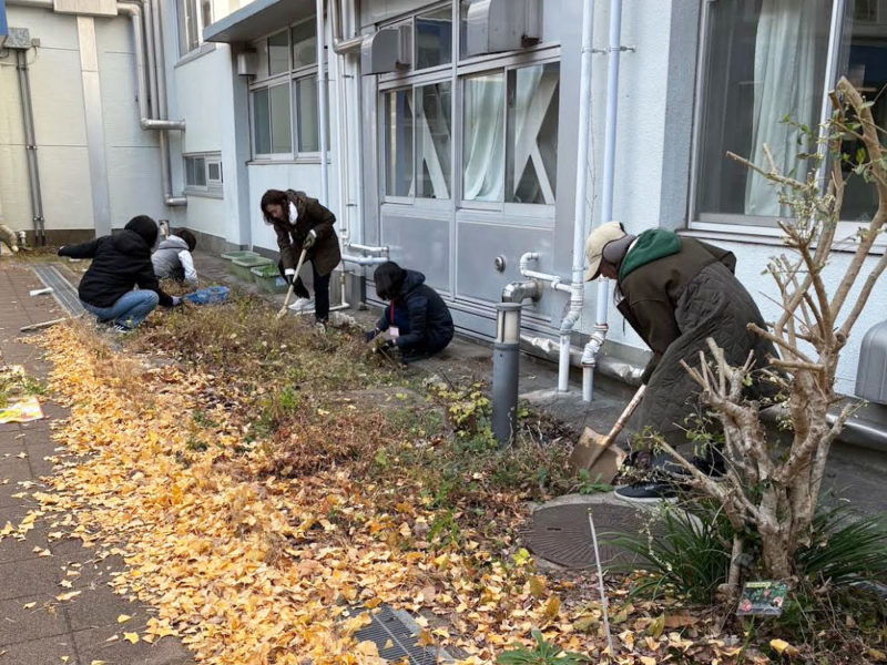 FW( フィールドワーク ) 部が作る腐葉土を毎回いただくので、そのお礼に FW 部管理区画の雑草取りを行い、年末の大掃除となりました。