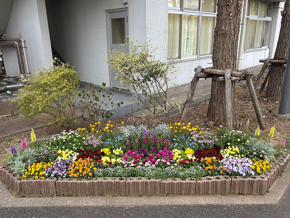 4 月の入学式では新入生を満開の花で明るく元気に歓迎したいです。お花たちは在校生の進級も祝福しているようです。