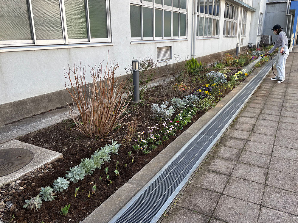 2025 年度のPTA 植栽委員会の花壇管理( 水やり、花がら摘み、雑草取り)は4月末まで続きます。